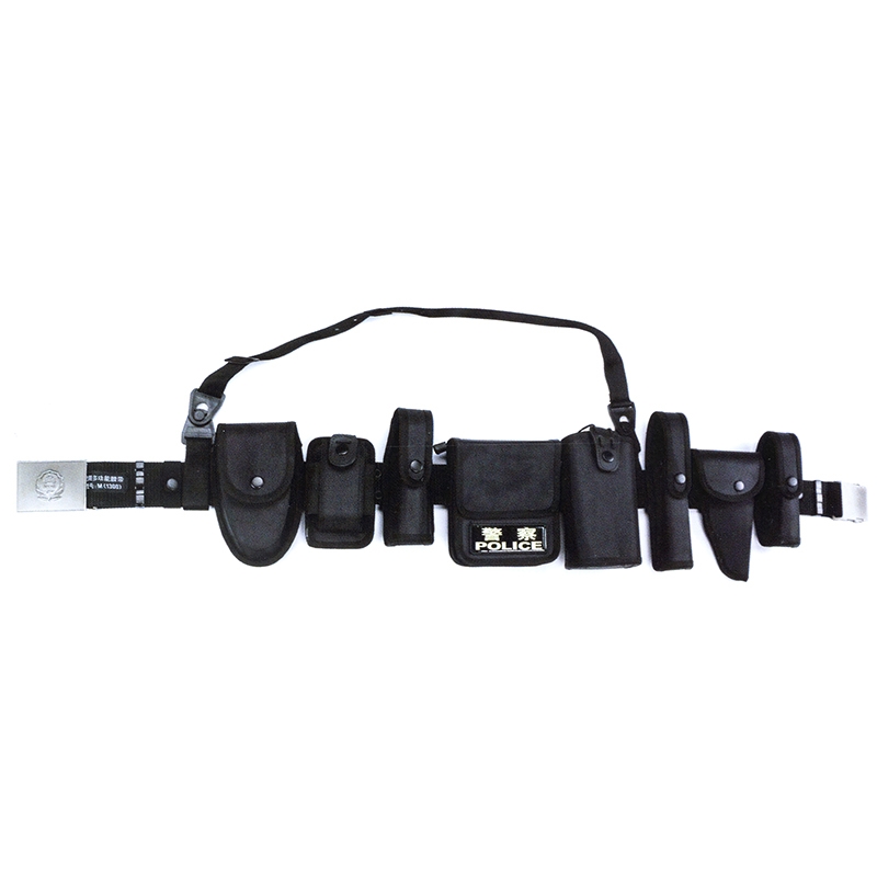 配裝:手銬套、對講機套、強光手電套、警用工作包、警用水壺套、警棍套、手槍套、催淚噴射器套、斜跨帶。警用多功能皮質腰帶采用牛皮移膜革制成。警用多功能尼龍腰帶采用阻燃牛津布制成。